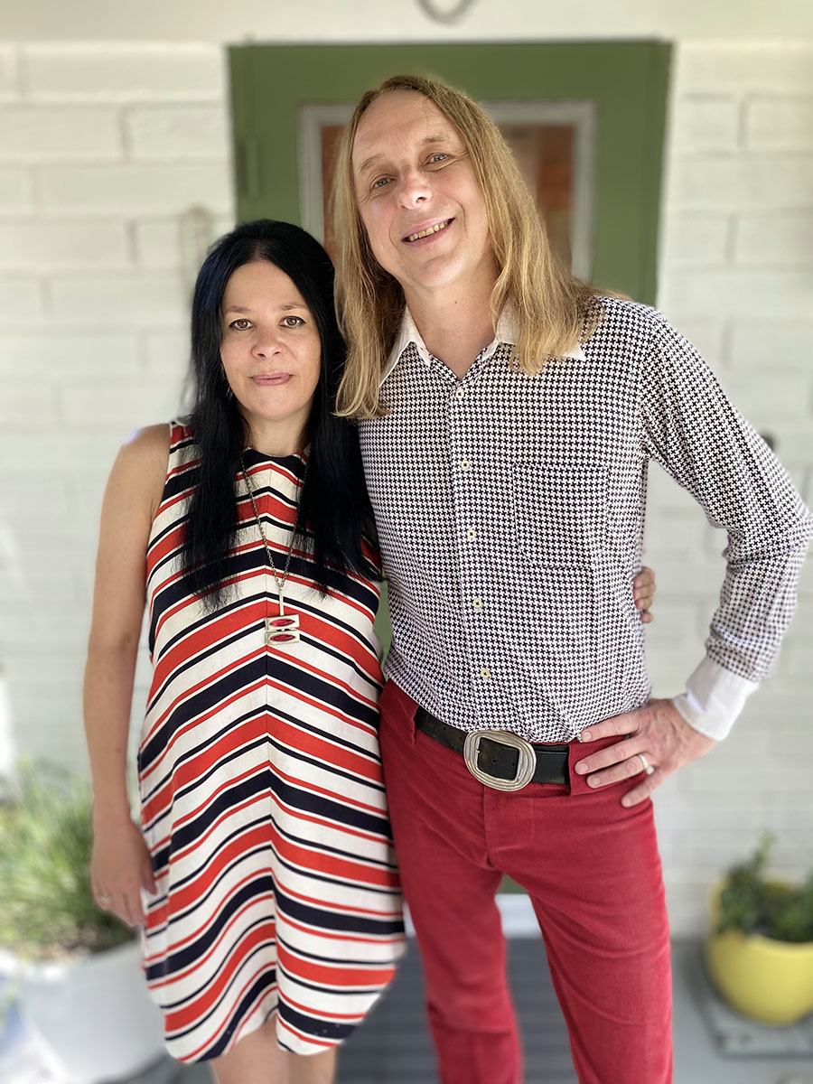 Anja Stax is the käse to his spätzle, a real time machine of a girl, sploshette moxy, a cool, refreshing drink from a bubbling brook who saunters in and out of the room like a Joe Meek freak beat, a futuristic throwback whose boots make their go-go rocking the Rickenbacker bass guitar for local katzenjammers the Rosalyns, when she’s not playing clubs with the hubs. The chick’s got some busy bees in her own hive, and together Mike and Anja make a great team whether it be playing together in a band, doing DJ sets, or raising their son, Philip (named after the aforementioned Phil May).