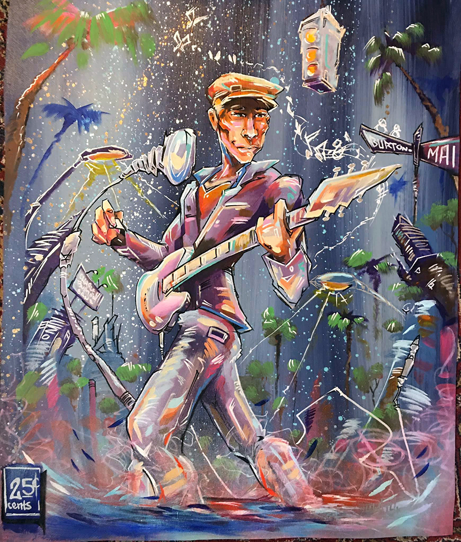 It hasn’t been an overnight success, however. Charles has been playing clubs, venues, and garages near you since his teens. The mantra was always “let’s set up to play, it’ll probably take the cops an hour to get here…,” he smiles. “We played loud!” Dynamics aside, Burton has proven himself musically with a burgeoning catalogue of six albums and decades of live appearances at Patrick’s in the Gaslamp; Tio Leo’s, the San Diego House of Blues, and the Kraken in Solana Beach, to mention but a few.