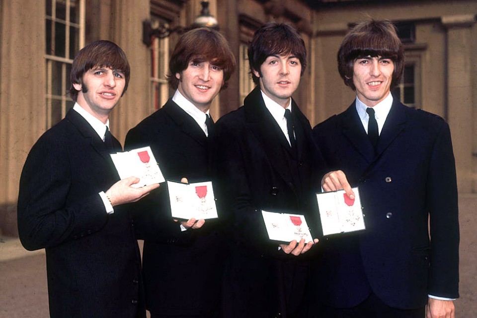 The Beatles, receiving their Member of the Most Excellent Order medals in 1965.