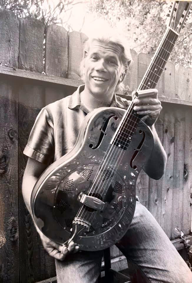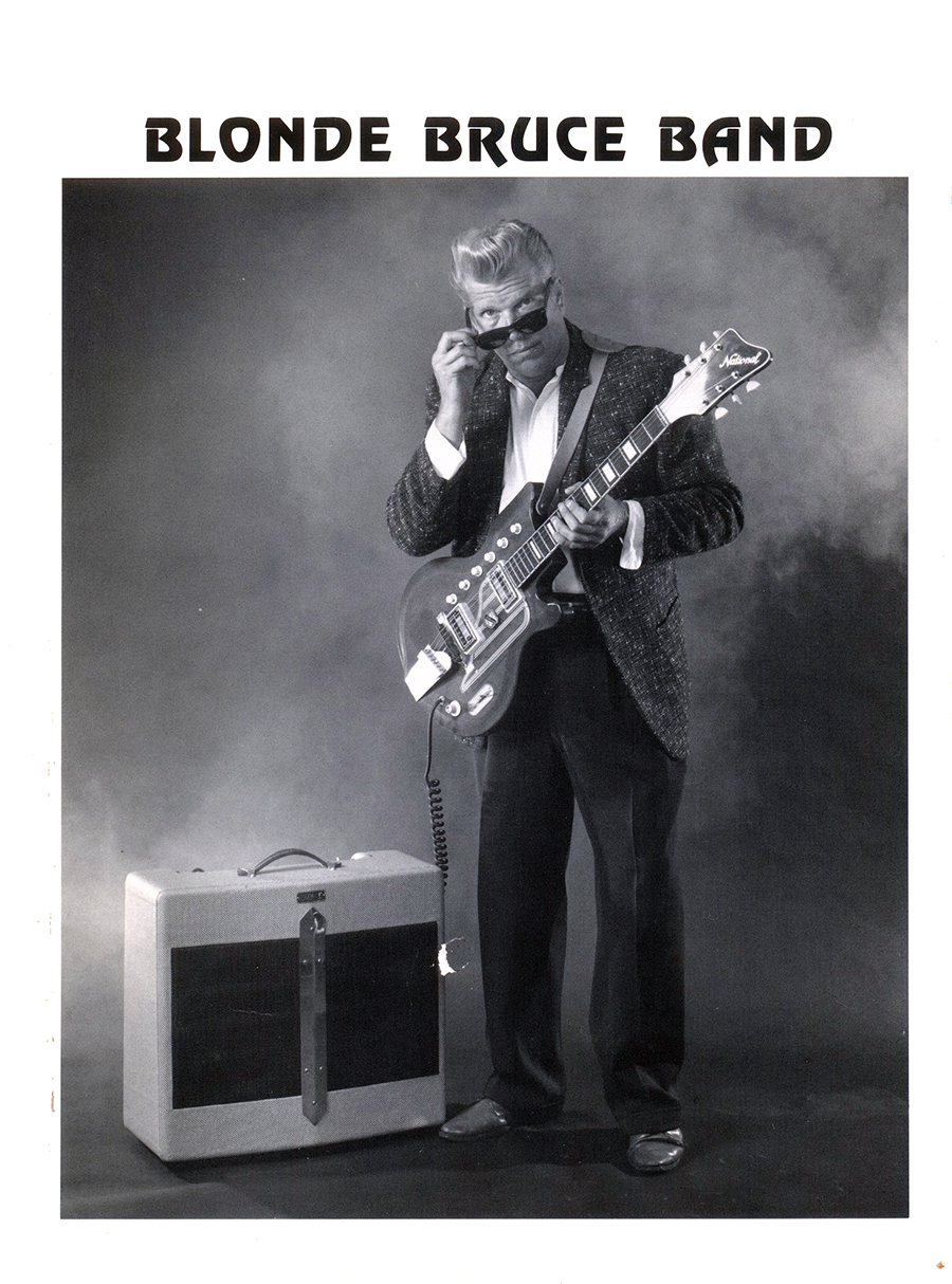 I first met Bruce sometime around 1982 or’83, shortly after he moved from Phoenix to San Diego. My first recollection of ever seeing him, was sitting on a chair in front of his little house off of North Park Way, long blond hair—like Gregg Allman’s—unbuttoned vintage Hawaiian shirt, and playing a vintage National Dobro. If my memory serves me right, he was having a yard sale, selling mostly vintage clothes, furniture, and accoutrements, which he did throughout the eighties and nineties.