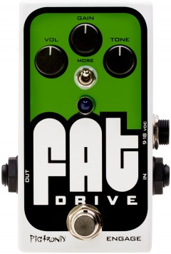 Seriously, the FAT Drive does deliver some serious tone. Its multi-stage tube emulated clipping is very unique and the personality one’s tone takes on is as big and aggressive as an NFL linebacker. Working between the Vol and Gain knobs, you can also add some of your amp’s drive into the mix, if desired. I was even able to get a thick and domineering tone just using the Fat Drive direct into my console!