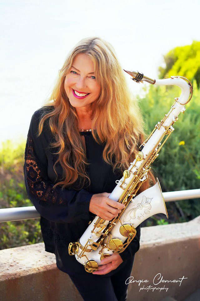 Many San Diegans, particularly folks in coastal North County where Nims bases herself, are familiar with Nims’s ensemble Spirit Wind, which plays a mix of jazz, Latin, and R&B. In true “I see no boundaries” fashion, the ensemble takes their influences from all over the world, what might be called a sort of world beat approach. Nims accentuates this eclecticism by performing not only on the traditional jazz wind instruments of the soprano, alto, and tenor saxophones, but also incorporating Native American, Indian, African, and Asian flutes into the band’s performances. Besides Nims, Spirit Wind includes the talents of keyboardist J.R. Betts, guitarist Jimmy Patton, and percussionist Warren Bryant.
