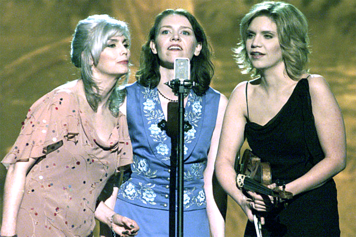 Emmylou Harris, Gillian Welch, and Krauss, singing “Down to the River to Pray” for the movie O Brother Where Art Thou.