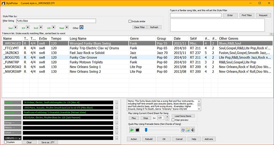 Here’s where it gets good. Although it started as a humble MIDI playback program, the “RealStyle” performances are actually performed by real humans. I’m talking every fill or filigree, every funky turnaround or rockin’ ride-out has been intelligently selected from literally thousands of “previously performed” little chunks that are related to the instrument and style. I can’t say I totally understand how it works exactly—although I do suspect the use of voodoo—only that it does, with a little help.