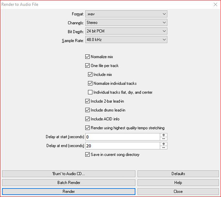 Once I’ve found a style that’s displaying me the bass line I like, I save that BIAB file and go to Audio > “Export Song as Audio File,” at which point I am greeted with a window like the one in Figure 2.
