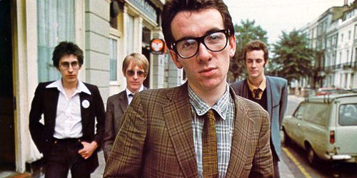 After his childhood, which was spent soaking in his father’s success, Costello began with a folk duo called Rusty while he was still in high school. The musical progress would follow in quick succession to a London pub rock band called Flip. All the while he was dealing with the varied musical voices streaming through his head: Duke Ellington, Louis Armstrong, the Beatles, Elvis Presley, Hank Williams, George Jones, Eddie Cochran, Gene Vincent, and the psychedelic pop of the late ’60s. All of it flowed out from him unforced, in original songs that were as challenging as they were accessible. Today we look at “Watching the Detectives,” and “Every Day I Write the Book,” as standard rock classics. But, when they were first released, something new was being created in the world of rock ‘n’ roll. With rapid fire lyrics that carry a Lennon-esque whimsy and music that jumps and bounces over unusual scales and melodies, his music blossomed until an independent London label, Stiff, signed him on the basis of a cassette demo recording.