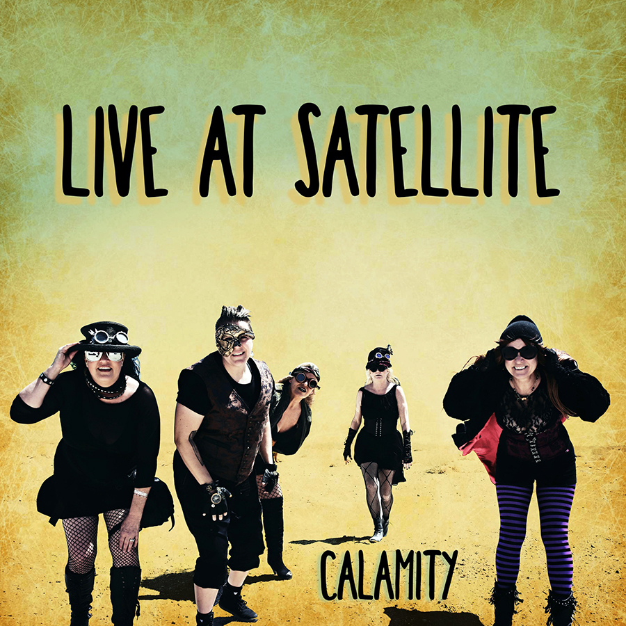 Calamity is Nisha Catron on guitar and vocals, Cathryn Beeks on ukulele andvocals, Marcia Claire on bass, Jules Stewart on drums, and Patric Petrie on violin. The album is Live at Satellite, recorded and produced by Jeff Berkley at Satellite Studio in San Diego, except the track “Earthquake Girl,” recorded and produced by Christopher Hoffee at Chaos Recorders.