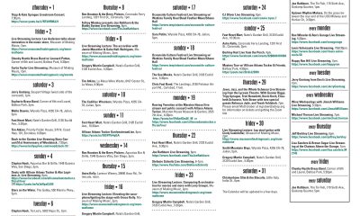 Dear Readers, With everything so uncertain these days and concerts so spotty and irregular, the calendar will be on hiatus until further notice. It would be...