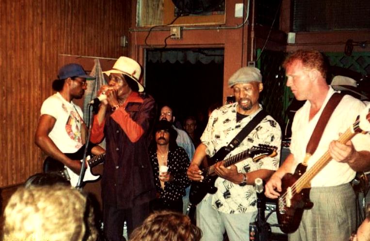 Patrick on stage with the Junior Wells Band. Photo: Patrick Rynn.