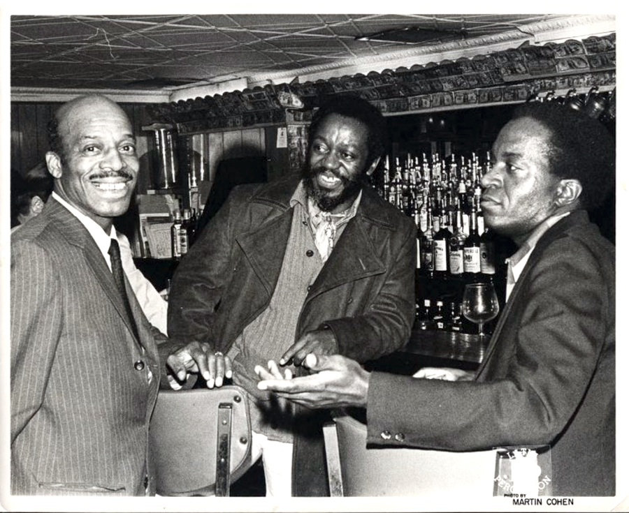 Jimmy with Papa Jo Jones (left) and Jackie Williams, 1970s. Photo: Martin Cohen, University of Missouri Kansas City, Jimmy and Jeannie Cheatham Collection.