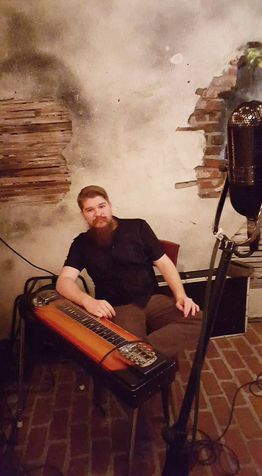 Joel Tuttle (eight-string steel guitar, five-string banjo, electric guitar) was drawn to the band a year ago by its unique sound. He shares shares lead duties with Natt and is largely responsible for the fills and counterpoints that make the music so delightful. Before joining, he had not played the steel guitar, and only a little banjo. He has consciously avoided mimicking any traditional players, choosing instead to find his own path to his own style. When not filling out the Atta Boys sound, Joel can be found performing complex solo fingerstyle guitar and giving music lessons.