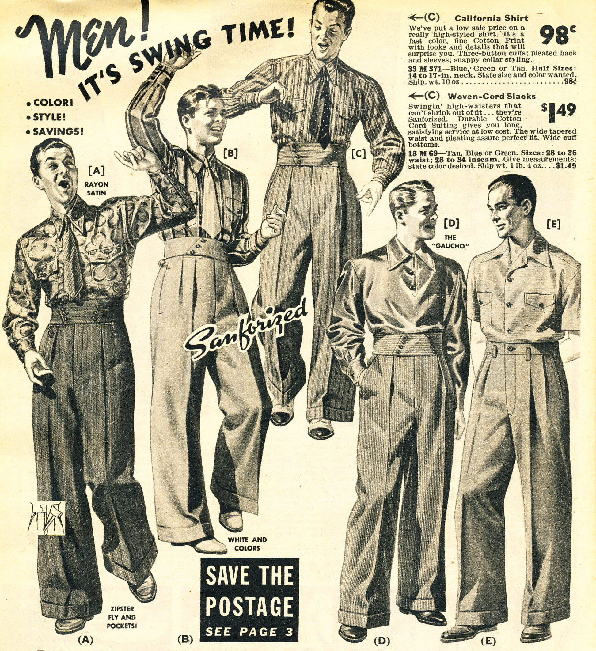 1940s’ ad for men’s swing dance clothes.