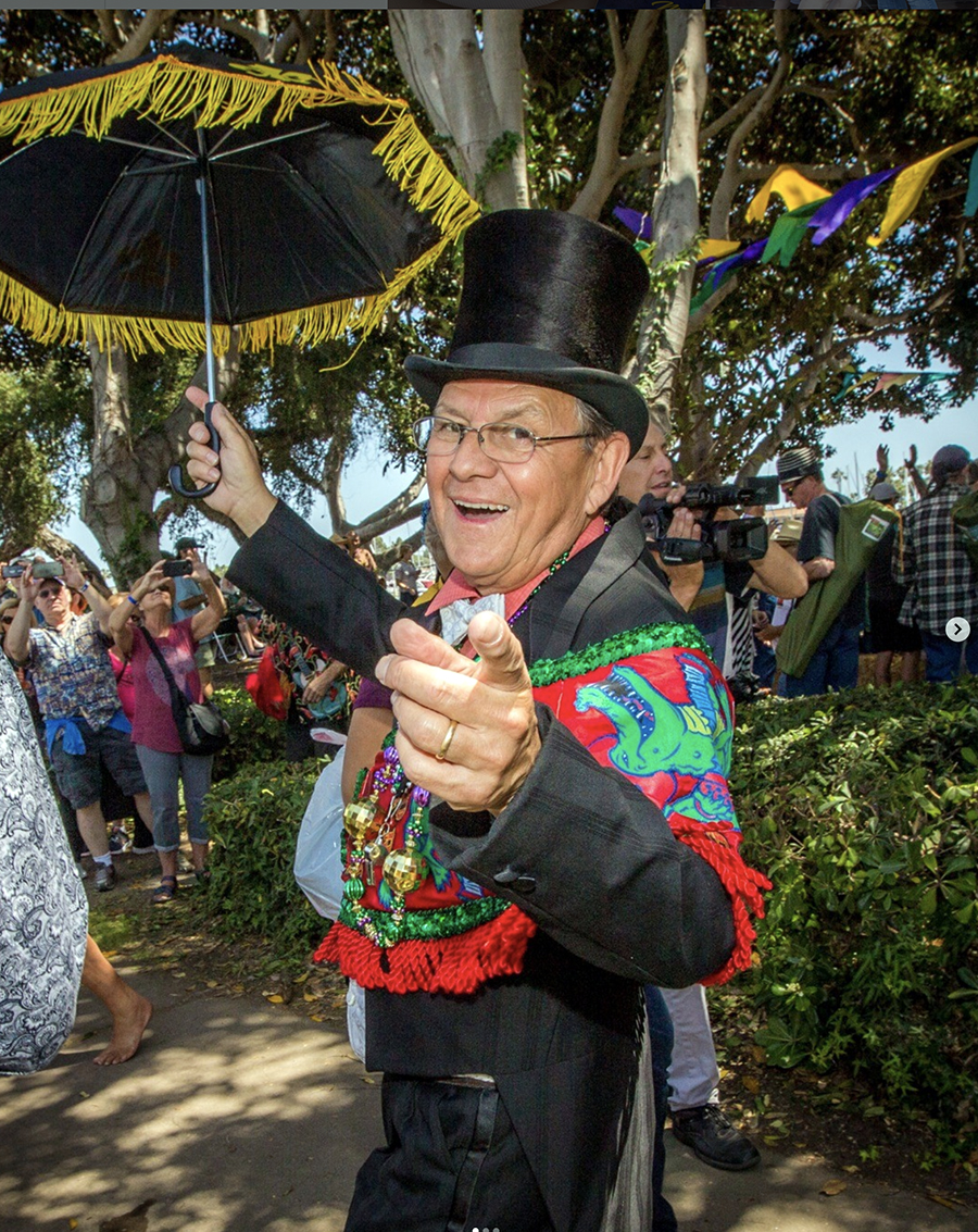 Oliver helped start the Bon Temps Social Club in 1993 and says it’s been the banner carrier since the very first Gator by the Bay. “The Social Club continues to host frequent dances in San Diego.” he says. “Louisiana-themed educational and cultural topics of all sorts can be found along our Louisiana Avenue at the festival, right near the Bon Temp Dance Pavilion. We even host a Kids Day on the Thursday morning of the event for about 200 local third and fourth graders, where we offer live Louisiana music, education, food, and even Cajun and Zydeco dance lessons…makes me happy to be a part of it.