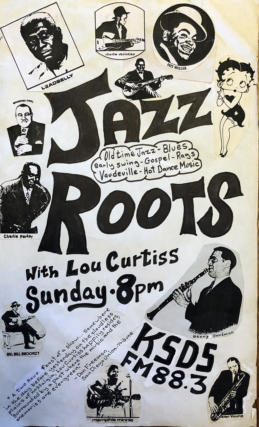Lou’s story is also the story of the folk music scene in San Diego, beginning in the 1960s. Folk music in America bourgeoned during this period as a cultural outgrowth of the progressive political movement, particularly its coalescing around the Civil Rights movement and opposition to the Vietnam war. As a child, Lou was introduced to both folk music and labor-oriented politics by his father, who was a member of the IWW (International Workers of the World) union and rode the rails during the Great Depression. Lou’s own experiences included registering African-American voters in the deep South and being threatened by the KKK. His social sensibilities, activism, and love of roots music from the South (blues, Cajun, bluegrass, etc.) shaped his lifelong dedication to collecting and disseminating American roots music, mirroring the efforts of Jon Cohen and Alan Lomax.