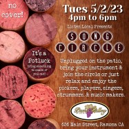May 2nd we’re gathering for a Song Circle from 4pm to 6pm on the covered back patio of Pamo Valley Winery’s Tasting Room on Main Street in Ramona. Plenty of parking, byo chair and unplugged instrument and when the circle comes your way you can play any song you like and the rest of the circle will join in, if you like. It’s a potluck so if you’re coming to participate or just listen please bring something to share if you’d like to get in on the yum. No cover