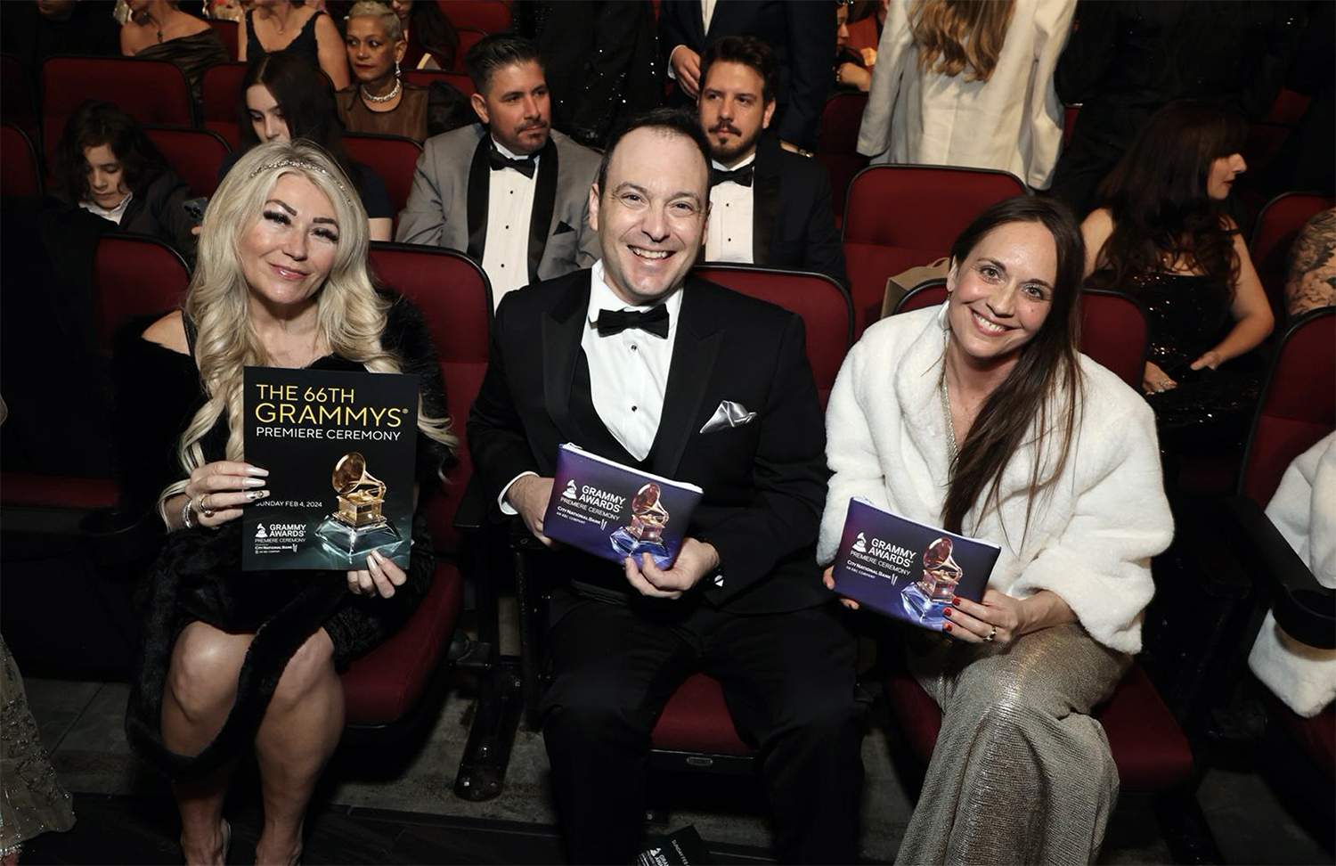 Brian Witkin, Esq. at the 66th annual GRAMMY Awards, alongside fellow entertainment attorney Christine Busineslle, Esq. (Left) and Pacific Records Recording Artist Kristina Bennett (Right). Photo: Randy Shropshire
