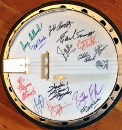 Jason’s prized banjo, signed by all the banjo greats