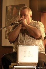 Besides singing and playing guitar, Morin blows a pretty mean harp. His harmonica work can be found on a couple of Joe Rathburn CDs, and Morin just recently completed some recording for Beston Barnett for one of Barnett’s Art Hurts recordings. “It was one take!” he says, revealing the surprise he finds in the very short recording session. Like the guitar, the harmonica has been with Morin most of his life. “My father had a harmonica. I remember he used to play “Isle of Capri.” I fiddled with it sometimes. When I was in the Navy in San Francisco, I bought one, a Hohner Marine Band. I just played it until I got good at it. Anymore I think I’ve gotten pretty damn good at it, too.”
