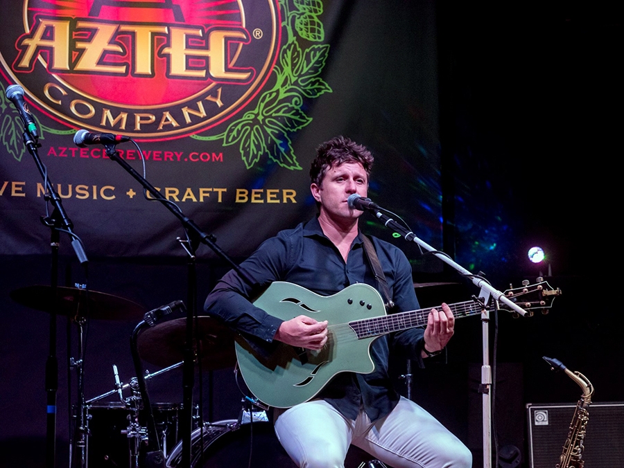 The key to Tarr’s solo performances is his use of looping technology to achieve a fuller sound. “When I lived in London from 2005 to 2011, I made my first album,” he said. “To showcase the album around London, the band needed to be 11 strong—horns, backing vocalists, two guitars, percussion, and everything that was on the album. Quite shortly,after the album came out, I made the decision to come out to San Diego permanently, and I didn’t know anyone.” Tarr needed to find a way to be able to perform and make money. “I also needed to be able to play the original songs for that first album, which is called Move Yourself, by myself, so I got a loop pedal and never really looked back,” he remarked. “I can incorporate pretty much my whole skill set on a looper and as they have developed, there is more and more you can do with one. I use one for live gigs maybe three or four times a week. I wouldn’t really know what to do without one on a solo gig these days.”