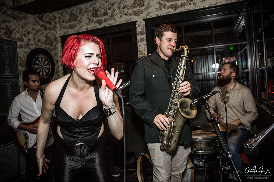 With so many people in his band, how hard is it to coordinate all the moving parts? “I don’t find the gigs that hard to organize,” he said. “I trust my crew to deliver every time, and I feel I have some of the best of San Diego’s talent on the squad. They are like family. I think that the real key to a band’s success is the personalities involved and dynamic you build, even before the level of musicianship, to be honest. And although I have zero worries about the ability of any of them, I try to concentrate on putting everyone at ease and make sure they are relaxed and comfortable with each other and myself before anything else. Booking gigs is not the hard part with such a big band. I spend quite a lot of time getting subs of equal ability involved, so I can usually say yes to a gig and THEN see if everyone is free. The really hard thing is getting everyone to a rehearsal!! That can be a nightmare, with lots of near misses before everyone can agree upon a date!”