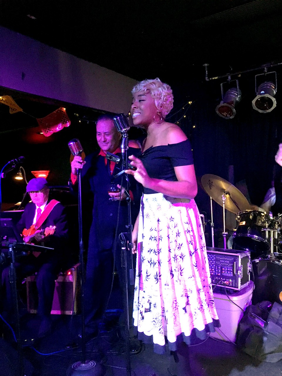 LA: I do. I’d seen them before and I love Big Band music. My elementary school teacher introduced me to Big Band music. Her name was Mrs. Wolf and she was amazing. That was her style and she didn’t hold back when it came to introducing kids to a wealth of music, not just the new stuff. And that stuck with me; I loved the sound of it. The swinging…it gets you. It was through one of the Jazz Pockets—Warren [Lovell], who is the male lead in Big Time Operator—who invited us all out to have dinner with him and his family. It was Karaoke night and it was a giant group of us just hanging out and having fun. He invited us up to sing, saying, “What do you know? Sing something!” So, I sang, “Dream a Little Dream of Me.” Then the next time Big Time Operator played, Warren invited me up to sing a song with their band. I think I sang some Etta James…and that’s how that came about. I’m not their constant, but if the main person isn’t able to play…I really enjoy it.