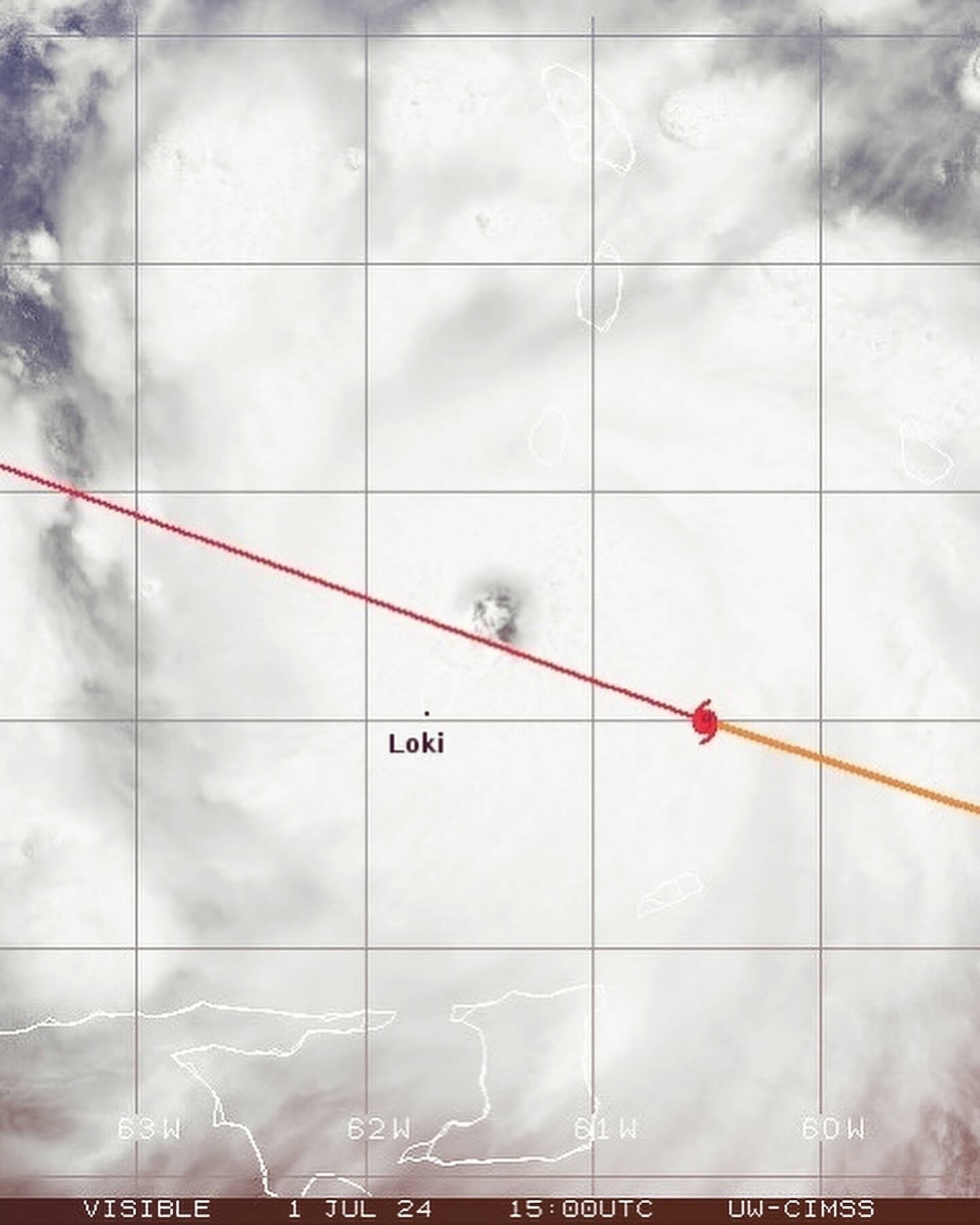 Satellite shot of Loki in Grenada during hurricane Beryl. Grenada is typically considered to be safe from hurricanes, which is why we were there. We were lucky to be at the south end of the island, where the damage wasn’t bad.