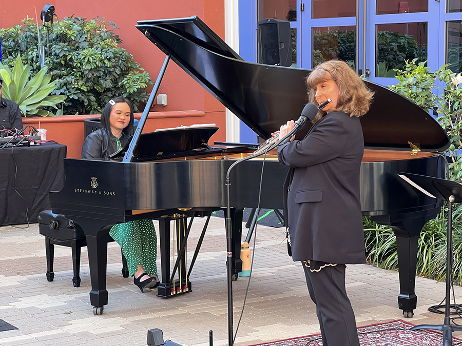 As he she continued her diligence learning the flute, she acquired gigs and met other musicians who become mentors.