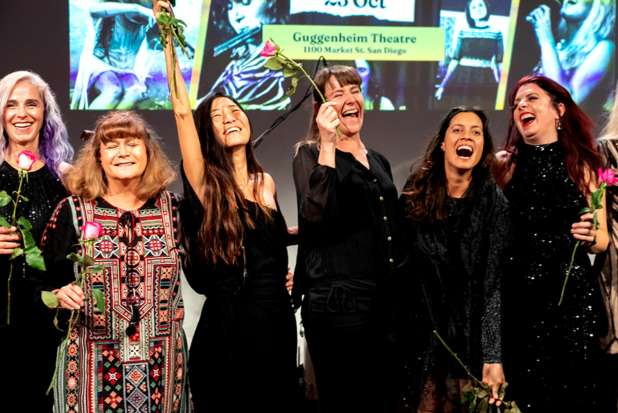 Women in Jazz concert in the Guggenheim Theatre, Park & Market building. Monette Marino, Lori, Jamie Shadowlight, Laurel Grinnell, Lorraine Theresa, Whitney Shay.