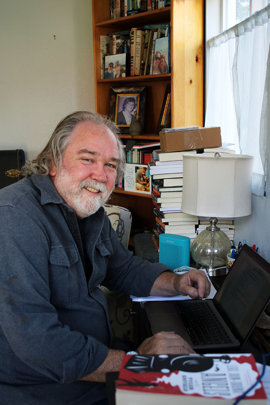 Our next meeting was more focused and productive. Part of my study was to really listen to the lyrics of the songs. Mark’s lyrics are indeed special and intriguing, easily conjuring up visual stories in the listener’s mind. During our interview for this story, I told him that when I listen to “Lost Time on the Old Highway” I envision a lonesome two-lane highway somewhere in a desert where one might come upon an oasis of sorts, where there is a gas station, a store, a restaurant, and maybe a post office. There are two guys sitting at a table having coffee and talking as the sun sets over the distant mountains. Mark said that was exactly what he was intending to happen when he wrote that song. In fact, he said it was always his intent to create those sorts of “mind pictures” with his lyrics. He certainly succeeds quite regularly. That lyrical prowess certainly foreshadowed his success as an author.
