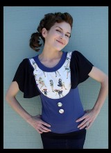 Selling her items on Etsy and through commissions, with prices ranging from $32 and upwards of $115 for a range of truly unique blouses and dresses, Davies has built a fan base for her clothing as well as her music. However, she is torn between keeping her enterprise at the original level or expanding a little, recently taking a business class to help in the decision. “It’s hand-made one-of-a-kind items, that’s what it’s based on,” she explained. “Yet I want to branch out into small runs that can be carried in local shops, that aren’t hand made. But that takes away part of what’s special about them, which is that I do make them.”