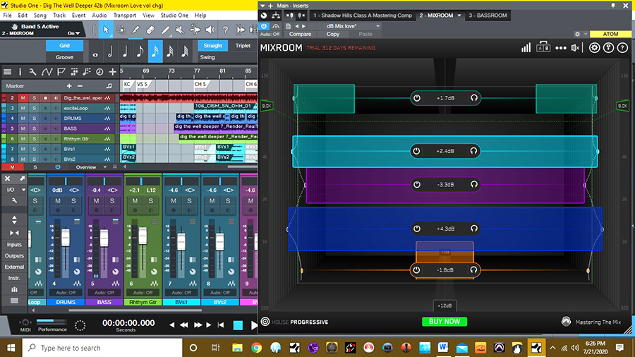 Mastering engineer Tom Frampton’s company Mastering The Mix (www.masteringthemix.com ) has now introduced a new take upon that three-dimensional EQ archetype with Mixroom($64, VST/AU/AAX), another thoughtful product that adds a lot more functionality and puts a bit of spin on that sonic ball as well.