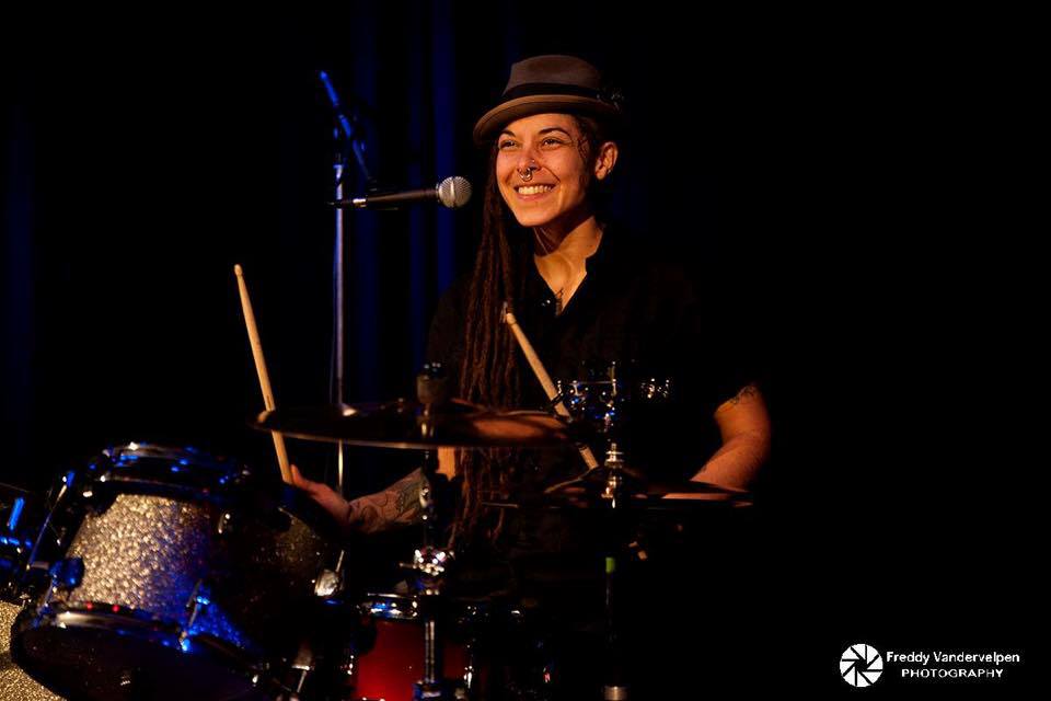 “Now days things are not the same. We gotta learn to change when we make mistakes, we gotta grow even thought it aches…,” one of the many lyrical gems in Rhythm’s newest collection of songs and a philosophy Rhythm carries into every experience. Most musicians these days have a day job. Rhythm’s day job is most often as a touring and session drummer. Lugging around the largest and heaviest of the standard blues and rock instruments is not for the faint of heart. Generally acknowledged as the strongest instrument on stage, drumming demands the role of fearlessness and leadership, two characteristics less commonly associated with females. “Women aren’t expected to be loud. I think that’s what catches the attention of so many people when they see women rock out.” There was a time when Rhythm related with the archetype of the “female drummer” but now that has changed. “One can carry a flute in one’s purse. I don’t really own a purse,” Rhythm chuckles. Nevertheless, that is still how much of the world views Rhythm. Ironic, given that when one watches Rhythm play, that is when gender most fades. “Close your eyes and listen, do you hear a female drummer or do you hear a drummer?” Rhythm ponders. “People refer to me as a female drummer every day without asking me how I feel about that label.”