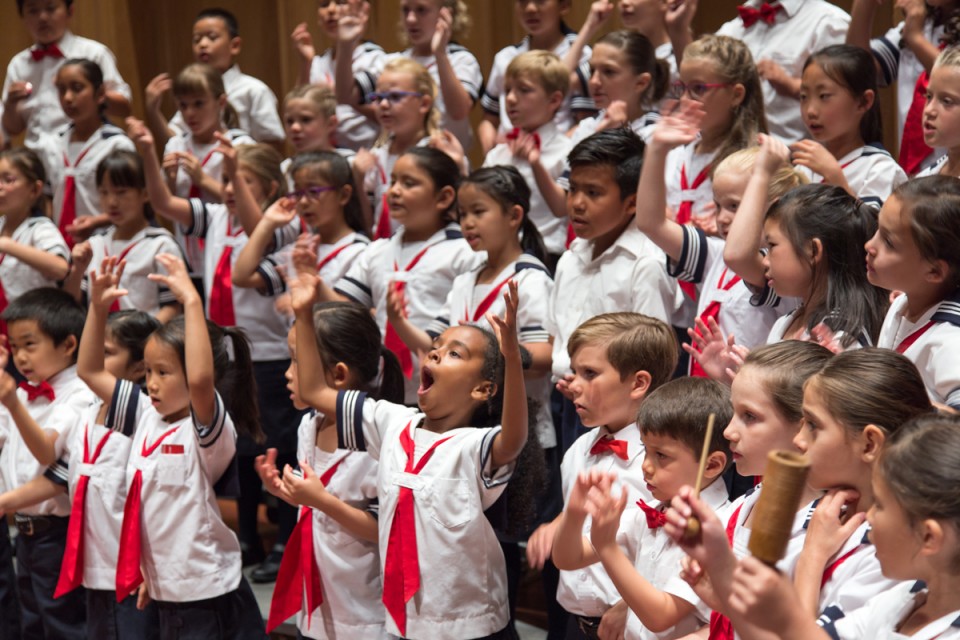 The San Diego Children’s Choir teaches music education through creative rehearsal techniques that engage the whole child in healthy vocal production and music literacy as well as encouraging self-efficacy and a sense of community and belonging. Rehearsal activities draw from the Orff and Kodaly methods, two widely used approaches to music literacy and ear training that focus on solfege, rhythm, sight-reading, movement ,and improvisation. The Choir emphasizes well-supported head-voice singing, which is a natural entrance into healthy singing that can evolve into any style once well developed. The San Diego Children’s Choir choristers also gain leadership skills during their time in the Choir that are nurtured through opportunities in rehearsal and, at the older levels, through formal leadership roles.