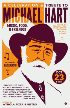 It is late October as I write this column… there are so many things on my mind it is difficult to focus. A couple of days ago, I played in front of an audience for the first time in two years. The occasion was a Celebration of Life Show for Michael Hart. Michael was the publisher of the Julian News and a strong supporter of music in San Diego, especially in the Julian area. I first met Michael when I was playing with Folding Mr. Lincoln. We were booked into the Wynola Pizza & Bistro, a venue that I hadn’t heard of. I would eventually play there about a dozen times spread across gigs with Folding Mr. Lincoln and the Mark Jackson Band. Every time I played there, Michael and his wife Michelle would be there to listen to the music, usually sitting near enough to the stage to maintain a steady between-song banter with the band. I came to appreciate the intimacy with the audience that venue provided and their genuine interest in the music, but also that they truly cared about the musicians as people. Conversations on breaks were often far-ranging, not limited to discussions of the music of the evening. When we were playing, Michael was often just sitting with his arms folded across his chest, eyes closed, quite lost in the music, and sometimes quietly singing along.