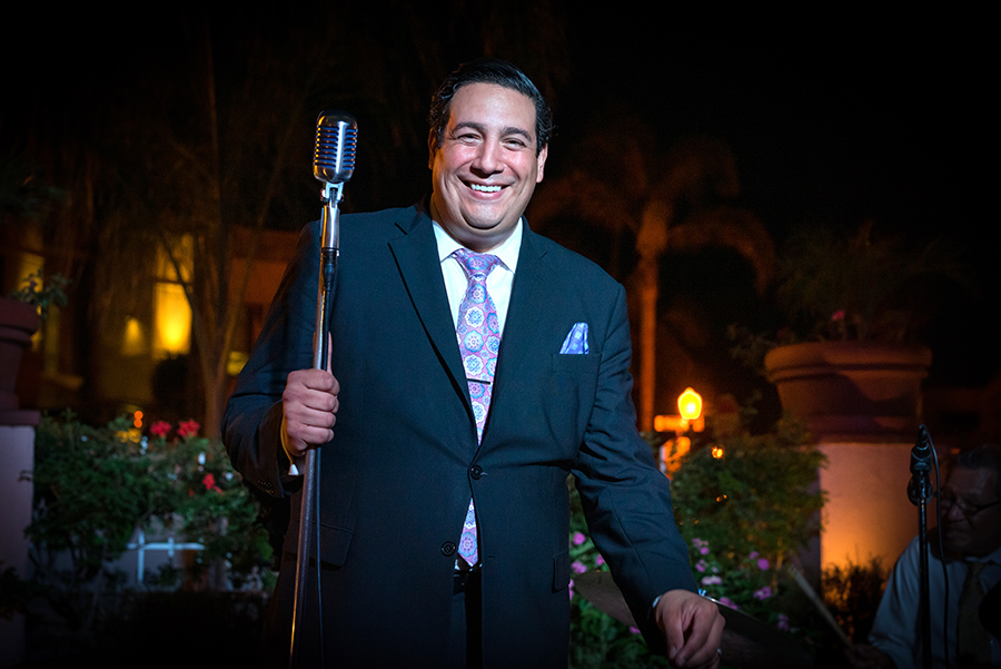 At any given moment in Palacios’ set, another transformation occurs. Roman places the microphone back in the stand, positions himself back a few feet, and releases vocal power. It’s no longer the Sands Hotel of old Las Vegas but La Scala in Milano. It’s time for Palacios to sing opera. Probably the person most surprised at Palacio’s musical diversity is Roman himself, a kid who grew up in a Portuguese family where his father was actively involved in the tuna fishing community. Palacios attended Castle Park High in Chula Vista and still calls the South Bay home, where he lives with his wife Maritza and daughter, Isabella.