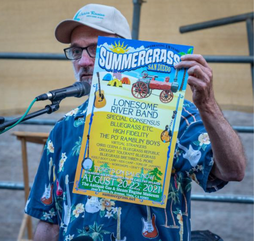 Summergrass is Finally Here! August 20-22. August is the month we all look forward to, as it brings the Summergrass Bluegrass Festival to the area. Hosted at the Antique Gas and Steam Engine Museum in Vista, Friday through Sunday, Summergrass has it all. Great national bands (Lonesome River Band, Special Consensus, Po Rambling Boys, Bluegrass, Etc., and more) as well as local bands, workshops, a Kids Music Camp including a main stage performance on Sunday, an Adult Camp, onsite camping, vendors, and more jamming than you can shake a stick at!