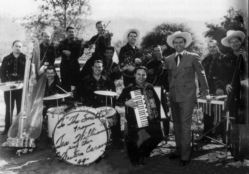 When Texas Jim was drafted in 1942, he turned over the reins to his fiddle player, Spade Cooley. Spade promptly changed the band’s name to the Spade Cooley Orchestra, and Smokey went to work for Spade. But ol’ Spade had a lead vocalist and guitar player by the name of “Tex” Williams. Besides being a talented performer, Tex was a handsome devil, which landed him starring roles in several B westerns of the day. Smokey was often featured in these movies as well. In short order, Tex became a star in his own right and the inevitable rift developed between Tex and Spade. Soon Tex lit out and took with him Smokey and most of the band.