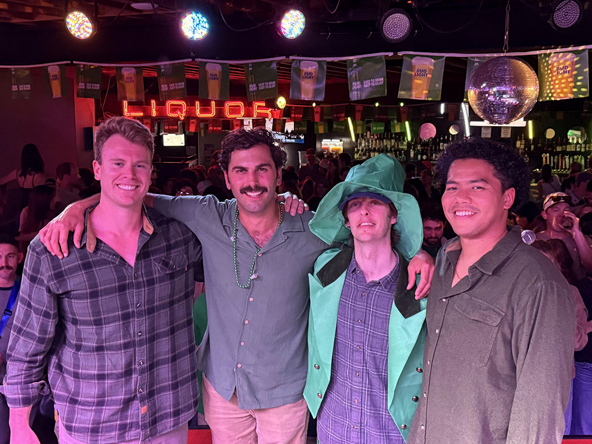 Baron Lunbeck/Sandollar: At a show, we featured Sloat Dixon on a rapping part. He was over-served a bit that night at the bar. When it was time, he jumped on stage to rap and he forgot his part. I tried to cue him with the beginning of his verse, so I sang the lyrics: “Take your shoes off.” And he missed the cue. He bent down and took his shoes off, which took a couple of minutes to get the knots out. We just kept jammin’ cause no one could figure out what was happening.