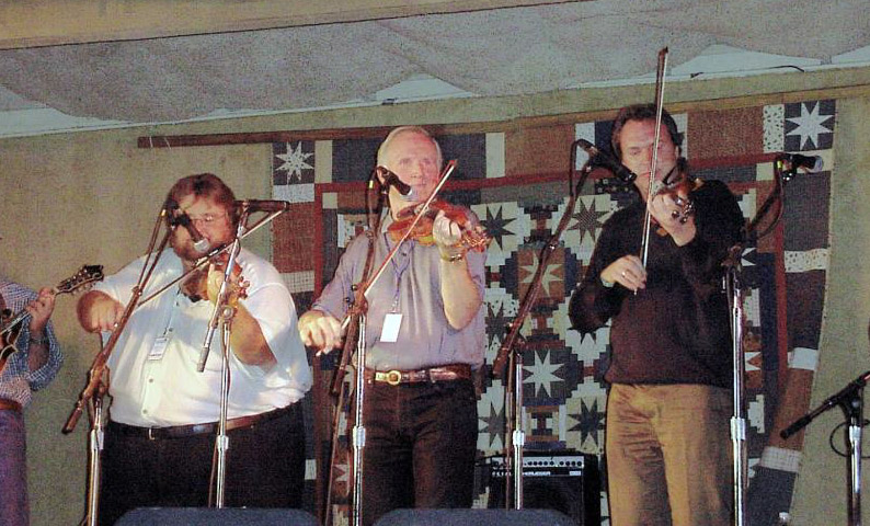 Three great fiddlers grace the Summergrass stage in its first year, 2001: Dennis Caplinger, Byron Berline, and Mark O’Connor.
