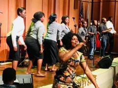 Matrida David (Ngyuku Taledshiwe in her native Congo) heads the Matrida Umojo Band, which was featured in the CWM concert Voices of Hope from Africa at the San Diego Central Library. She tells us, “The word Umoja is a Swahili word that means unity in English. The band is comprised of people from different parts of Africa; that is the reason we wanted to use the word unity because it unites all of us from different backgrounds together to share one thing in common (spreading the gospel). I sing religious music… Performing at the Center for World Music was one of the most breathtaking experiences I have ever had since I put my feet in the U.S.”