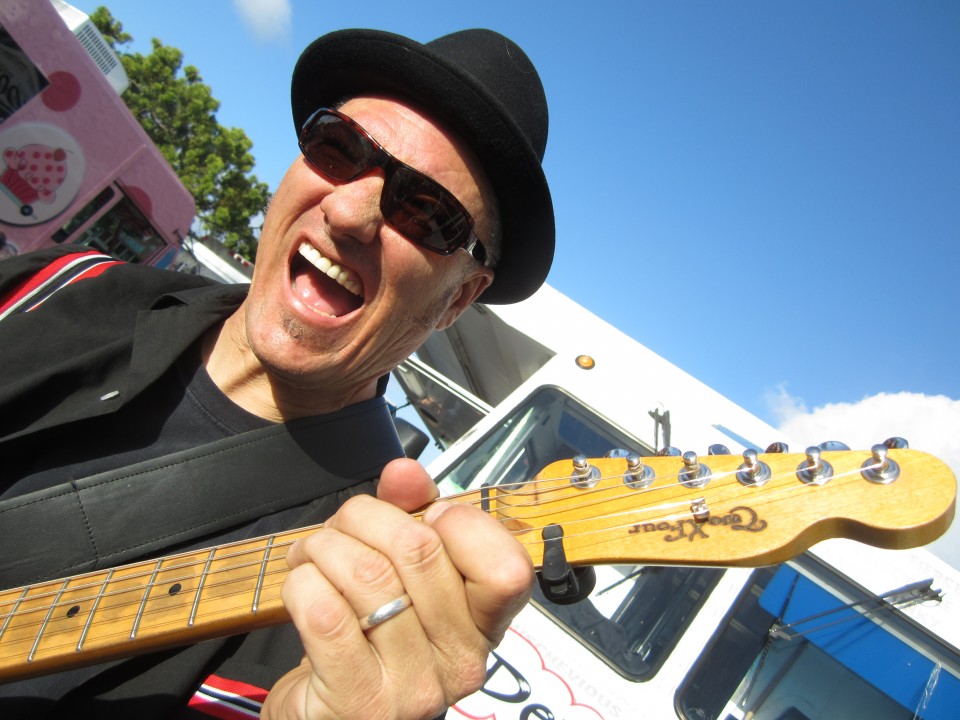 The band got tight practicing in Teves’ Adams Avenue office, then playing at nearby Smitty’s Service station on Tuesday evenings, a gig called Tasty Truck Tuesdays, which lasted two years. Packing axe, tone, and a combo, now he wanted an identity. Friend and fellow guitarist John Flynn (Little Kings) was happy to help.