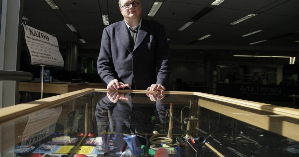 The UCSD Library commissioned original kazoo music (some serious and experimental, some very light-hearted) and the exhibits revealed some surprising kazoo connections in classical music and world music. We also revisited some related anthropological research in our kazoo exhibitions. As mentioned, our “kazoo salute” was originally visited as a research exercise, challenging us to use serious library tools to investigate a light, playful topic—-and we ended up with a lot of praise for the exhibits and had several well-attended study-break events featuring live kazoo music….(our local Channel 8 CBS News affiliate came in the back door, unannounced, during one of our live kazoo events with a full video and sound crew and created an amazing segment).