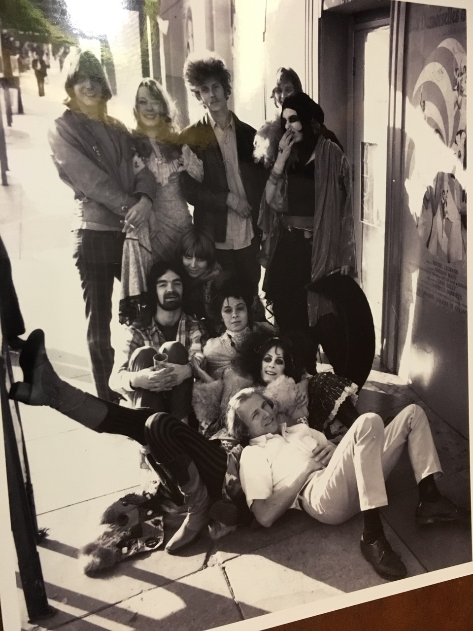 The tour crisscrosses Hollywood again: the Whisky A Go Go, the Troubadour, Pamela’s apartment where her “beau” Jimmy Page gave her an acetate of Led Zeppelin II, the songs still not in their final order. Waylon Jennings also dropped by that apartment a time of two. We stop at Charlie Chaplin Studios, across the street from the taco shop that inspired the Burrito Brothers to take their South-of-the-Border name. We head out West, to Beverly Hills–the Beverly Hills police substation and the Century Plaza Hotel where Keith Moon dumped a large box of Tide laundry soap into the towering fountain. Everybody gets out at the Whisky for a group shot, recreating a 1968 photo of Pamela, Gram Parsons, Chris Hillman, the GTOs, and the Flying Burrito Brothers.