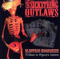 Electric Moonshine (Tribute to Popcorn Sutton) is the latest album by the Sickstring Outlaws. It is the 2014 follow-up to Johnny Drank Jack, covering much of the same territory: Bakersfield-style country songs about the misadventures of living life on the edge, like predecessors Hank Williams, George Jones, and other outlaw country singers, especially Merle Haggard. For subject matter, no problem; you have booze, drugs, and jail, and the regrets and trials of hard-living honky-tonk men. The ten-track CD is dedicated to a famous bootlegger.