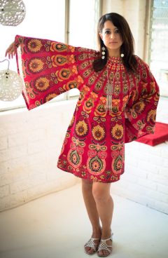 “I just finished the second line, which premiered at La Loupe Vintage shop here in San Diego. It focuses mainly on women’s outfits this time and as the label states, is heavily influenced by mid-century fashion in California. Super fun and colorful. All items will be available in my Etsy shop and at various ’60s events or pop up fairs around SoCal. I am not sure about a fashion show at Tiki Oasis this year–we did one on the Sunday by the poolside last year–but if the opportunity comes I sure will take it.”