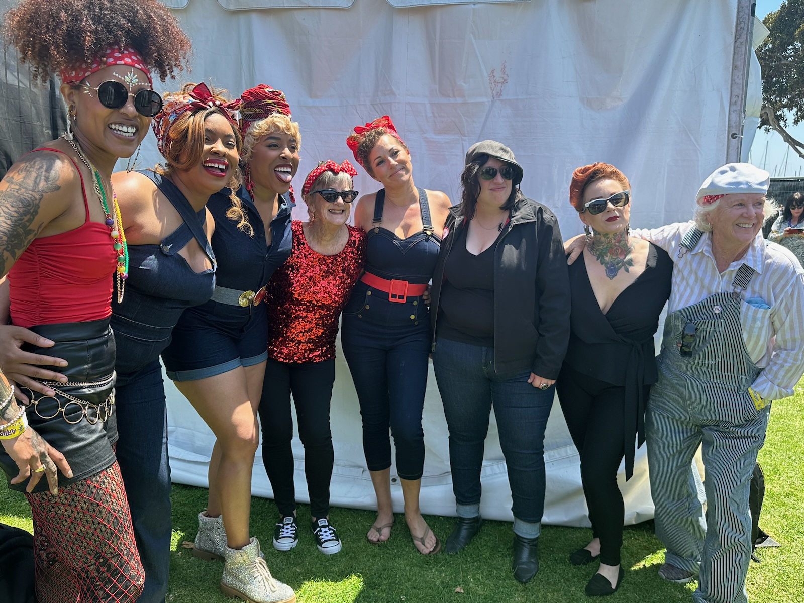 Jonesy (far left) with Sue Palmer and the Rhythm Riveters at Gator by the Bay last year.